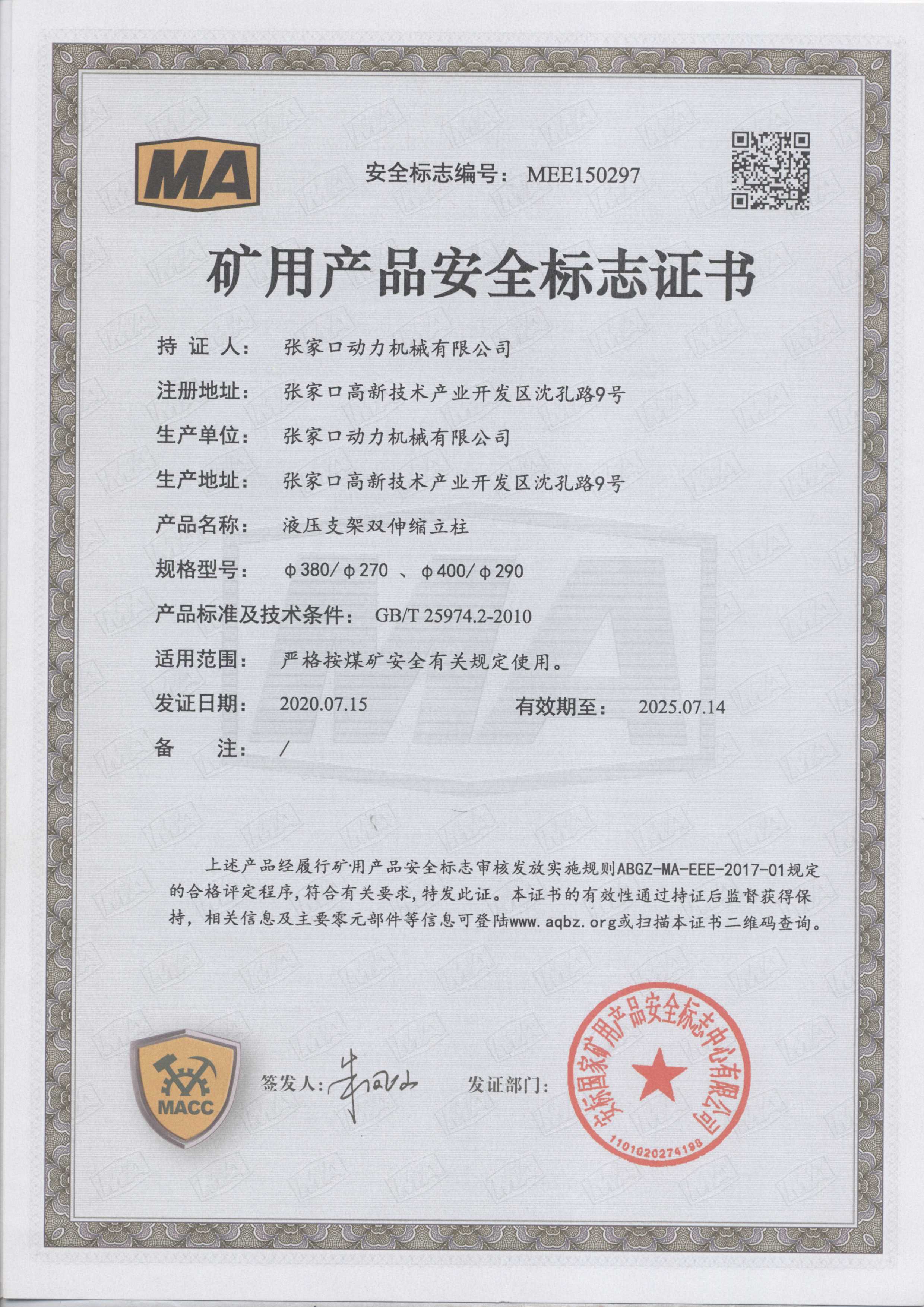 張家口動力機(jī)械有限公司生產(chǎn)資質(zhì)展示